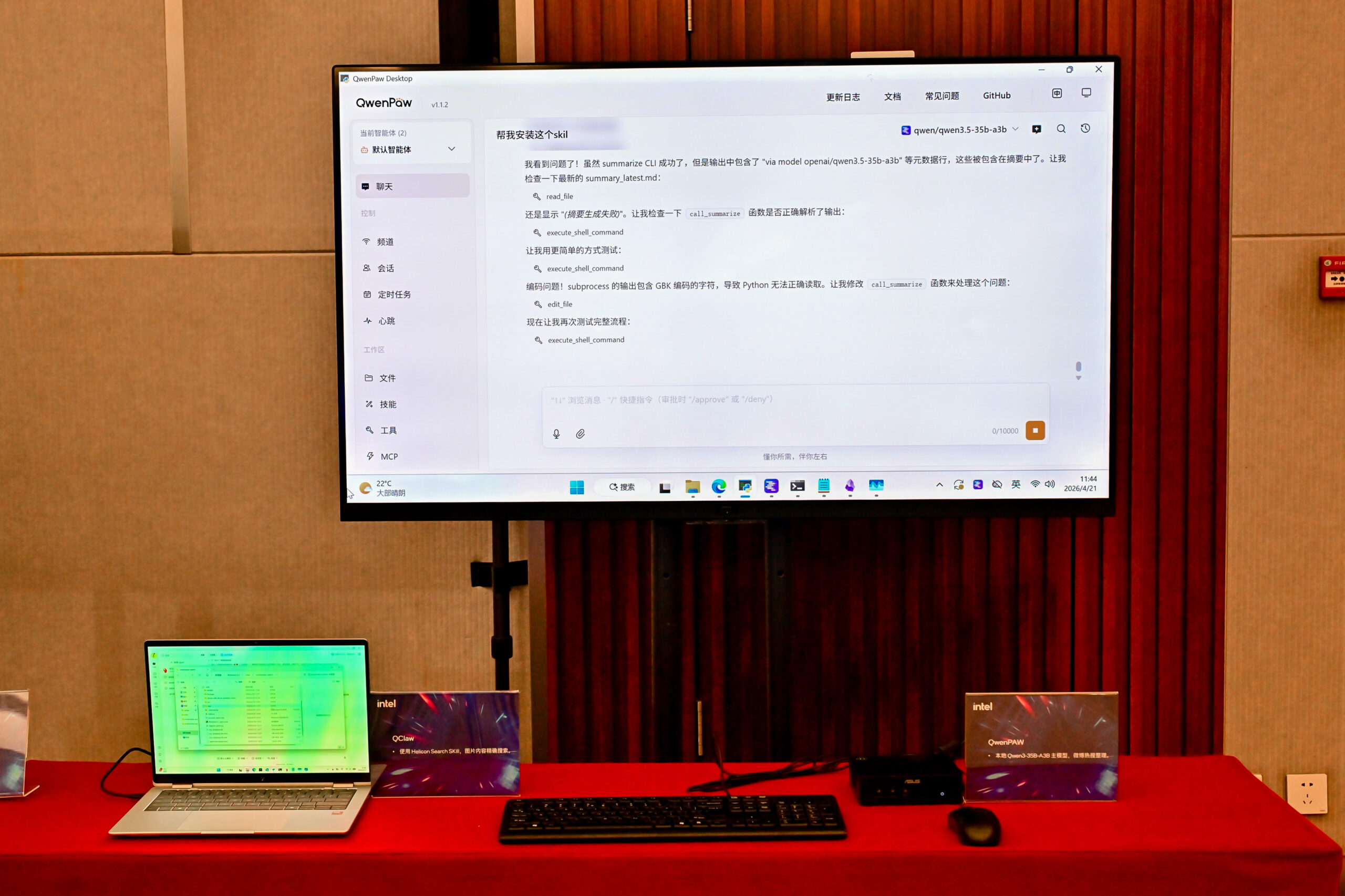 在拓展AI体验边界的进程中,英特尔携手Cherry Studio、樱桃AI助手、DuMate、Flowy、具芯科技、Molili、QClaw、QoderWork、QwenPAW、阶跃星辰、腾讯应用宝、TRAE、Workbuddy等生态伙伴,将前沿AI从开发者手中的酷炫工具,完成面向真实场景应用的关键一跃,使其成为具备广泛商业价值的智能伙伴。活动现场展出了超过20款AI演示,充分体现了AI智能体为各种现实场景带来的体验增强。