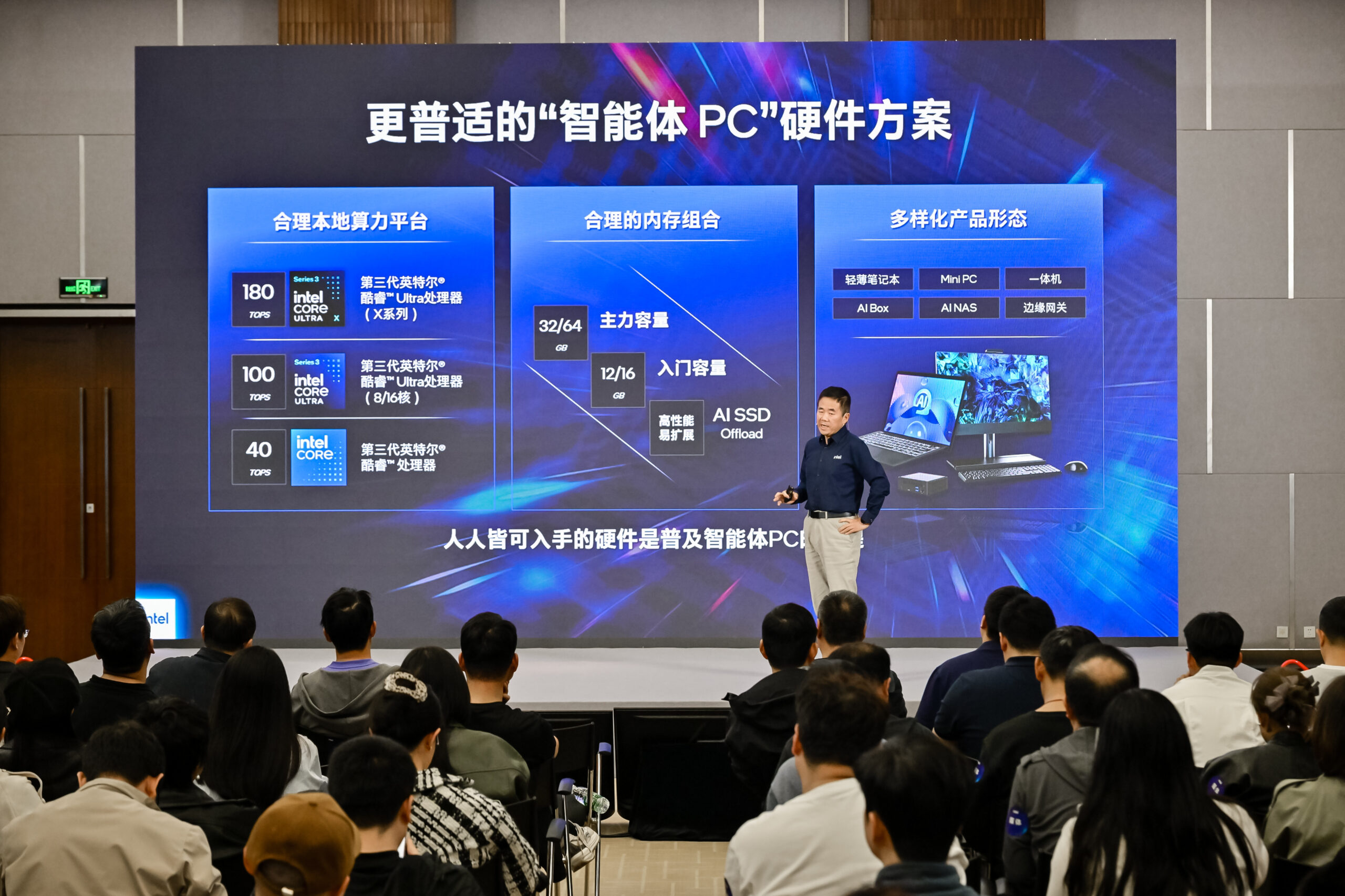 凭借酷睿Ultra和酷睿处理器的强大本地算力,单台智能体PC就能以混合AI部署方式运行OpenClaw等智能体,其产品形态覆盖从轻薄本、Mini PC、一体机到AI Box、AI NAS、边缘网关等全场景,为不同需求的用户提供清晰的能力定位。