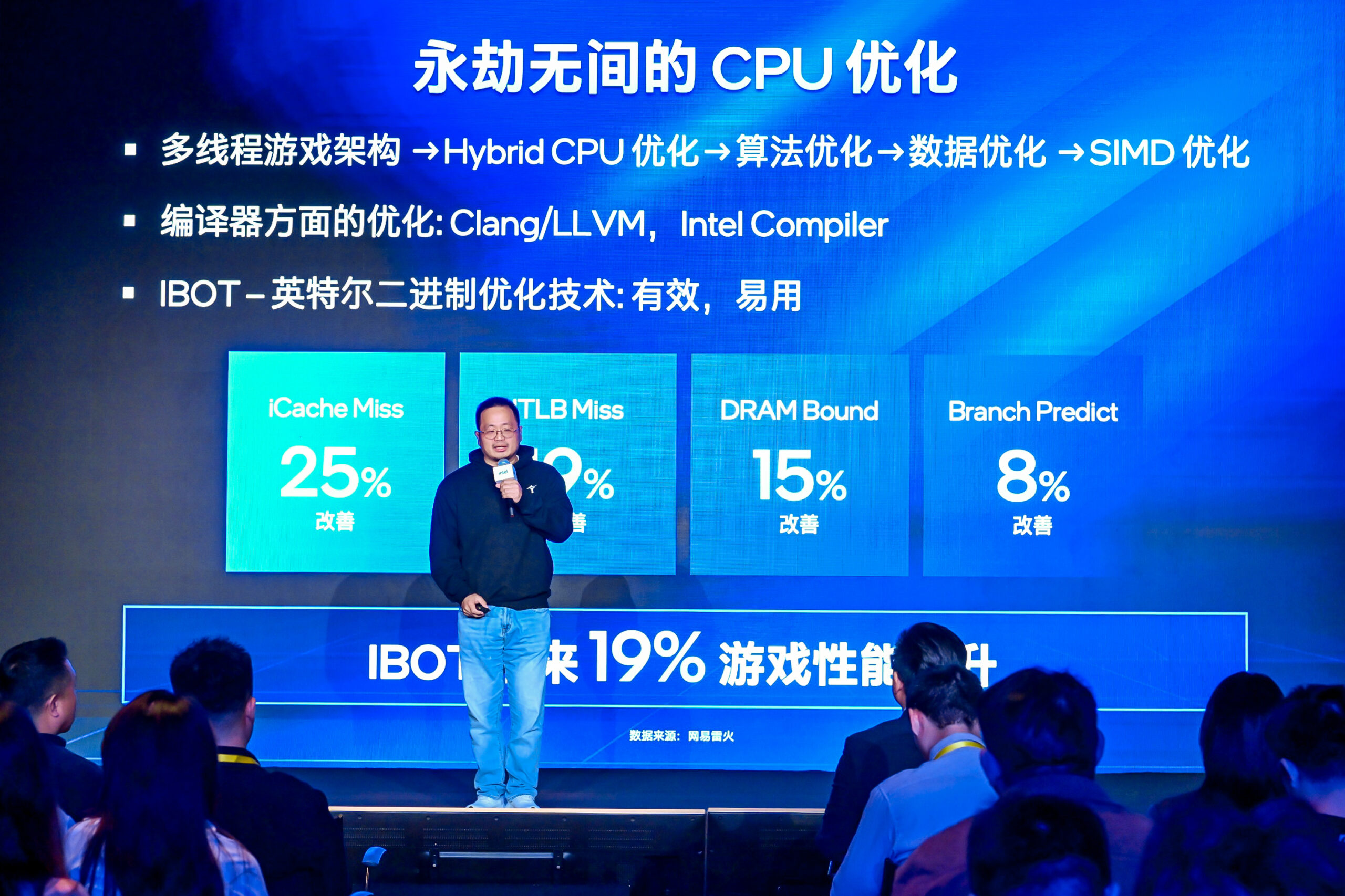 - 性能升级:创新的英特尔二进制优化技术(IBOT)通过更智能的方式优化游戏代码在处理器上的运行,从而减少缓存未命中、分支预测失败等性能卡点。在热门竞技游戏《永劫无间》中,通过IBOT技术,可实现19%游戏性能提升。其中包括指令缓存未命中率(iCache Miss)减少25%,指令翻译后备缓冲器未命中率(ITLB Miss)减少19%,DRAM内存访问瓶颈(DRAM Bound)减少15%,以及分支预测准确率提升8%。1