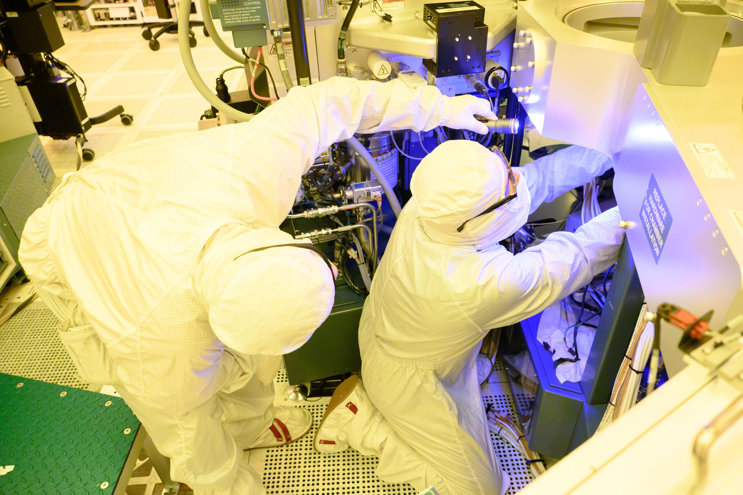 Production and cleanroom facilities at work in Intel’s D1D/D1X plant in Hillsboro, Oregon, in April 2017. (Credit: Intel Corporation)
