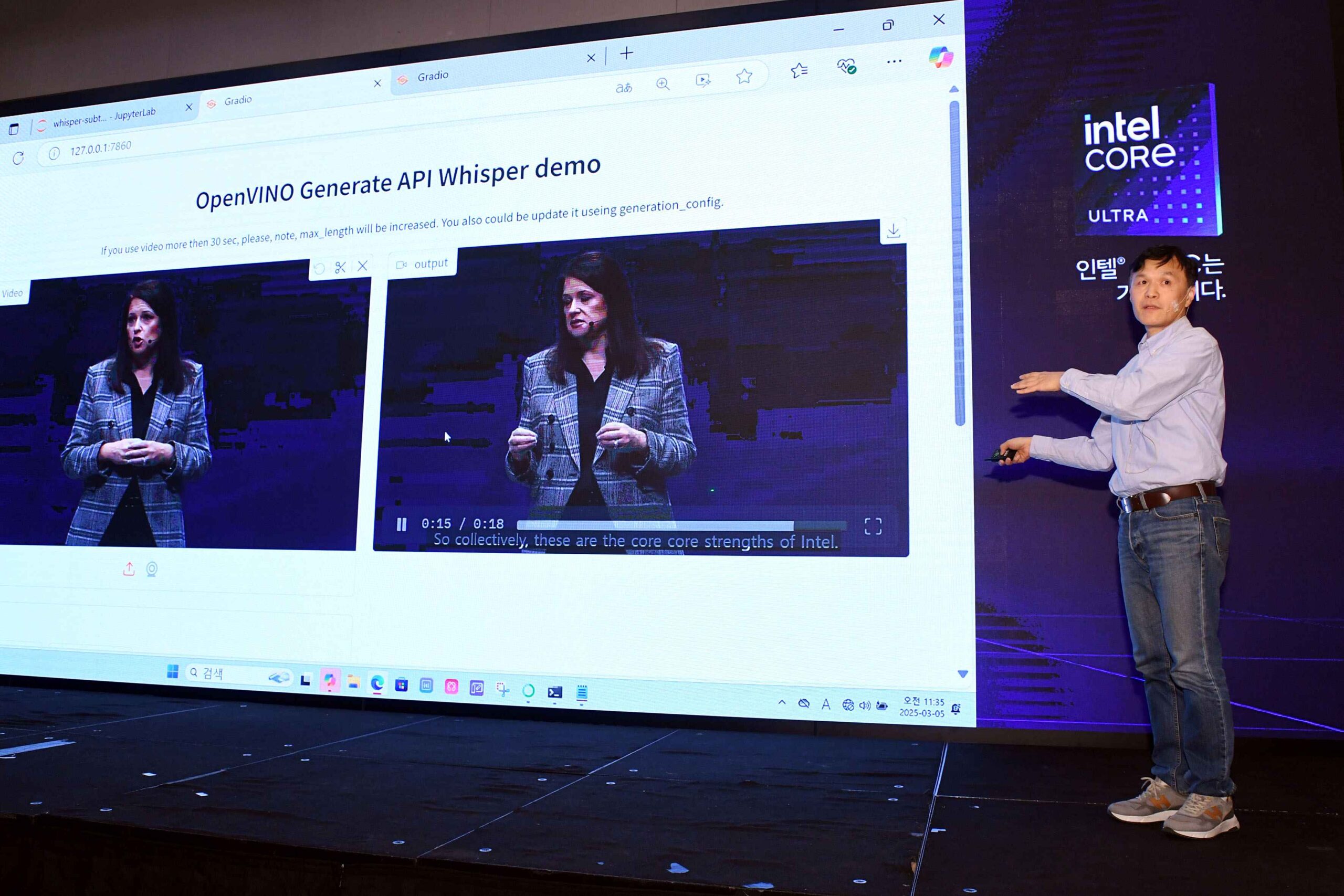 인텔코리아 박승재 상무가 인텔 테크 데이에서 인텔 코어 Ultra 200H 및 HX 시리즈 프로세서를 소개하고 있다